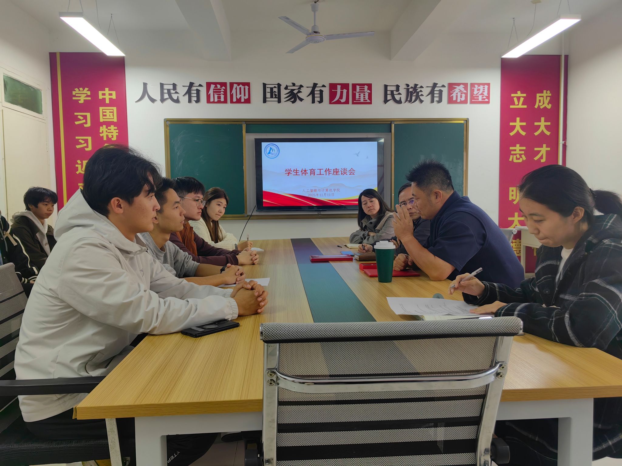 11月11日,人工智能学院在临潼校区骊山校园召开学生体育工作座谈会。学院党委副书记郭胜忠,学院体育辅导员,学院学工办负责人,团委相关负责人、2023级相关学生辅导员,学生会主席团成员、学生会体育部负责人、各运动队领队、体育委员代表、优秀运动员代表参加座谈。