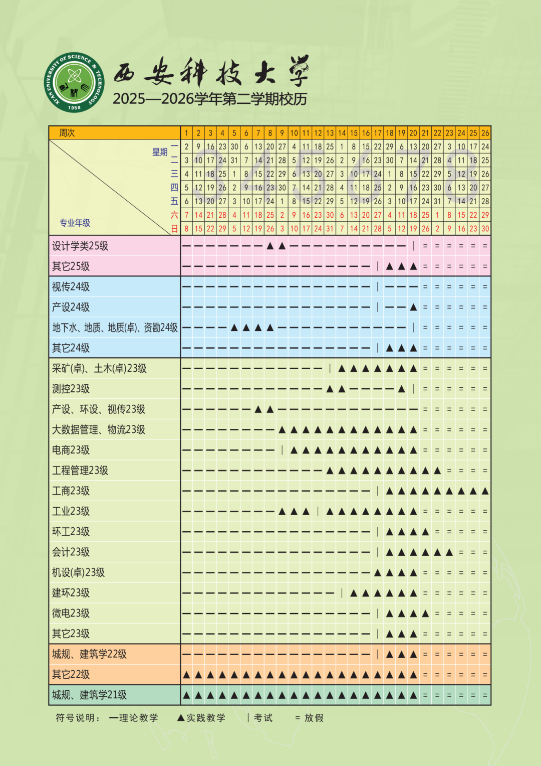 西安科技大学2025-2026学年第二学期校历