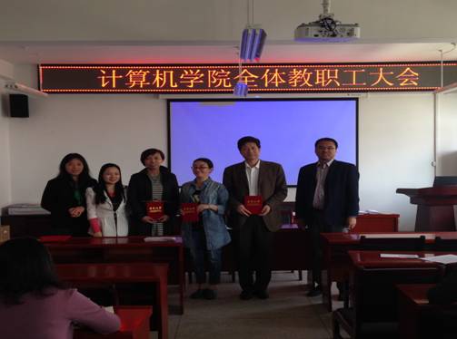 2015年4月23日上午,计算机学院在临潼校区会议室召开科研工作总结表彰动员会暨2013-2014年度科研先进个人表彰大会。全体教职工参加大会,会议由院长李占利主持。首先,主管科研工作的副院长付燕,总结了计算机学院2014年的科研任务完成情况和对2015年科研任务目标进行分解。其次,李院长宣读了2013-2014年度科研先进个人的表彰文件,决定对张群会等6位在2013-2014年度科研工作中取得优异成绩的老师进行表彰,并为获得科研奖励的老师颁发了证书;科研先进个人的获得者董立红老师,做了自己进行科研项目活动的心得体会的报告。最后,李院长总结讲话,他强调全体教职工应充分认识到科研工作的重要性,不断增强科学研究的主动性、积极性、创造性,扎实工作,推动学院科研工作再上一个新台阶。